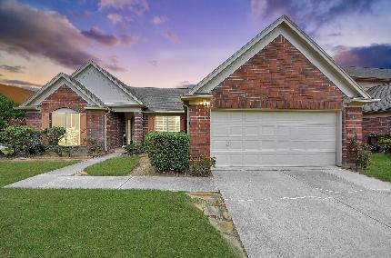 Freshly updated one-story in north Houston with a HUGE bonus room and a spa-style primary suite! From the moment you step through the gated front entry, you’ll notice the clean, modern feel: neutral gray tones, crown molding, designer lighting and easy-care tile & wood-look floors in all main areas. The remodeled kitchen shines with white cabinetry, granite counters, stylish backsplash and stainless appliances, plus a cozy breakfast area framed by a big picture window. Oversized living room with fireplace flows into an impressive second living/game room, perfect for movie nights, kids’ playroom or a home gym. Relax at the end of the day in your beautifully updated bath with double sinks, walk-in shower and **jetted soaking tub**. Outside, enjoy a shaded patio under the sail cover and a private, low-maintenance backyard that’s ready for grilling & gatherings. Convenient location with quick access to FM 1960, I-45 and nearby shopping, dining & schools. Come see it before it’s gone!
