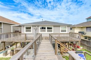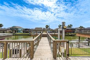 An adorable East facing three bedroom home in Bayou Vista with Open kitchen, living, and dining areas. Complete living quarters up and down. A boat house and lift ready for fishing boat bringing your fishing poles and crab traps. A lift to get your groceries and personal items upstairs. Community pool and playground. Per seller, the house has Flood Insurance until August 31, 2027 and transferable.