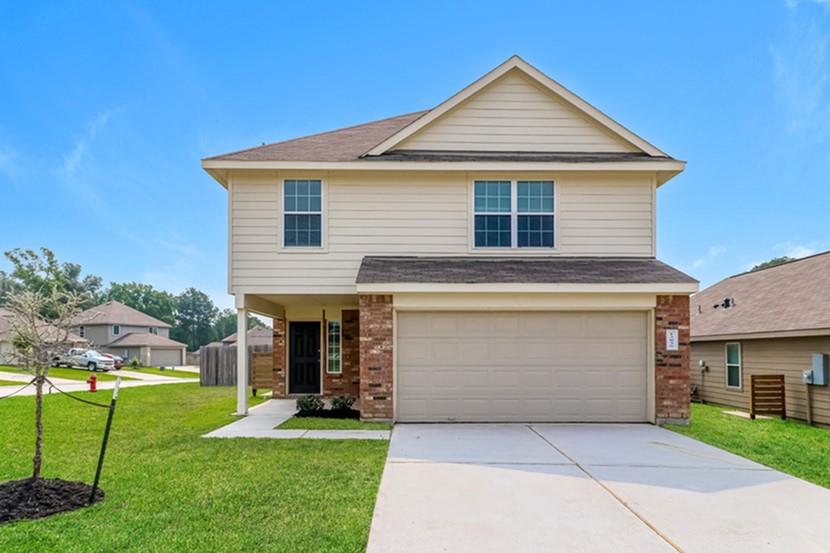 The Miguel plan is a delightful two-story home with 3 bedrooms and 2.5 bathrooms. This open concept floor plan has a large living area, dining area, and half bath downstairs. Enjoy a small covered back patio as well. All bedrooms are upstairs along with the laundry room. Features include wood-grain vinyl plank flooring, two car garage, fenced backyard, and a sprinkler system.All homes are SimplyMaintained for a $100 monthly fee that includes front and back yard lawn care and exterior pest control.