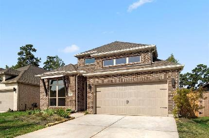 Beautiful 2-story, 5-bedroom, 3-bathroom home in Fosters Ridge, which features a brick elevation, wood-look flooring, no back neighbors, a sprinkler system, game room, dining space, open great room, and a covered patio in the spacious backyard. Impress guests in the island kitchen, boasting granite countertops, a walk-in pantry, and breakfast bar. The serene primary suite is complete with a walk-in closet, dual vanities, a tub, and separate shower. Community comforts include a swimming pool, recreation center, scenic lakes, park, and playground. Located off I-45, residents are minutes from The Woodlands Mall, Market Street, and The Woodlands Medical Center. Find outdoor recreation at the WG Jones State Park and multiple golf courses. Zoned to the highly acclaimed Conroe ISD.