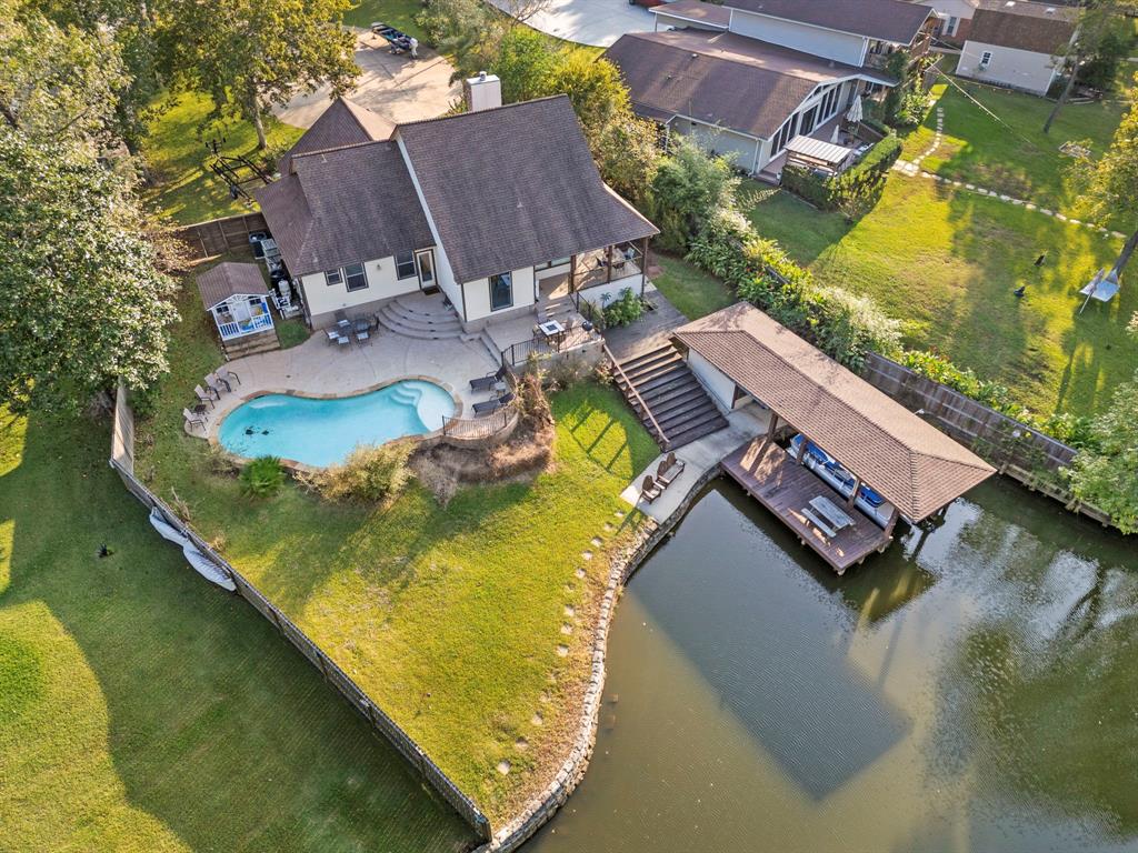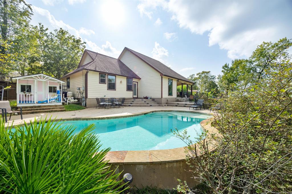 This custom-built home is perfect for lakefront living! Step into the backyard and enjoy stunning water views, a heated pool, and a spacious wrap-around patio—great for hosting, grilling, or sipping coffee as the sun rises over the lake. The open layout connects the expansive living room, dining and kitchen. Enjoy views of the lake and nature from any point in the main living area. The kitchen includes stainless steel appliances, granite countertops, a breakfast bar, and plenty of cabinet space for your weekend needs. Located in the peaceful Lakeview Manor neighborhood off HWY 830, this home is in one of the few lakefront communities allowing short-term rentals. Nestled in a quiet cove near Palms Marina, it’s a boater’s dream with calm waters, easy gas-up stops, and great fishing for bass and catfish. With boating, fishing, nearby shops, and restaurants, this isn’t just a home—it’s a lifestyle. Make it yours today!