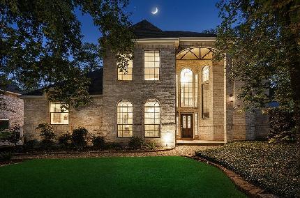 LOCATION, LOCATION, LOCATION. This hard to find all-brick, highly sought after one-story custom home spans 3,665 sq ft plus a 650 sq ft guest suite above the garage. It features a three-car attached garage with a workshop, beautifully landscaped, pool and spa. This custum home was built by the Builder for himself. Inside, enjoy two fireplaces, tray ceilings, 8" baseboards, crown molding, built-in bookshelves, china cabinets, marble flooring and plantation shutters through out the house. Large walk-in pantry and built-in wine fridge. Backyard is totally private. Updates: new roof in 2018, water heaters in 2023, AC units in 2025 and 2017. Pool heater 2019. Kitchen has all SS appliances- stove top, double oven, dishwasher and compactor all replaced in the last few years. Conveniently in the heart of The Woodlands, near Hughes Landing, Market Street, and I-45. Perfect blend of style, function and location.