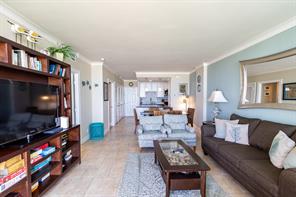 EXCELLENT GULF VIEWS FROM LIVING ROOM AND PRIMARY BEDROOM. EXERCISE ROOM, BEACH WALKOVER, 70K Gallon SWIMMING POOL. 24 HOUR FRONT DESK FOR CONCIERGE SERVICE DESK IN LOBBY. PICNIC AND BARBEQUE AREA. THIS UNIT HAS BEEN REMODELED FEATURES TO INCLUDE THE UNDERCOUNTER LIGHTING, BLUE PEARL GRANITE COUNTERTOPS IN KITCHEN MATCHES BOTH BATHROOMS. KITCHEN BACKSPLASH ALONG WITH FRESH PAINT AND CARPET IN THE BEDROOMS. ALL FURNITURE AND DECOR ARE INCLUDED ( EXCEPT MINIMAL PERSONAL ITEMS AS NOTED) NEWER AC INSTALLED IN 2022 / 2024. THE GALVESTONIAN HAS SEVERAL UNITS THAT ARE EXCEPTIONAL RENTAL INCOME, IF YOU CHOSE SO.