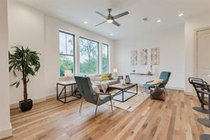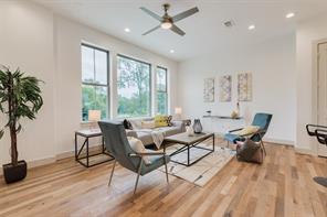 Modern living meets ideal location in this stunning 4-story home in Lower Heights, just two minutes from Washington Avenue. Enjoy easy access to top dining, shopping, and entertainment. The open-concept design features a sleek kitchen with a large island, flowing into spacious living and dining areas, plus a second-floor balcony perfect for relaxing or entertaining. The Primary Suite offers double sinks, a soaking tub, walk-in shower, and a huge walk-in closet. Secondary bedrooms include private baths and large closets. The fourth floor boasts a rooftop terrace with skyline views. Sophisticated finishes and modern touches throughout make this home a true gem. Refrigerator and washer/dryer are included!