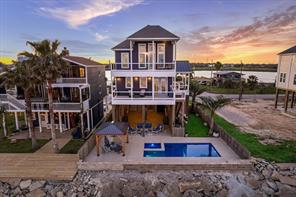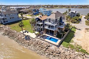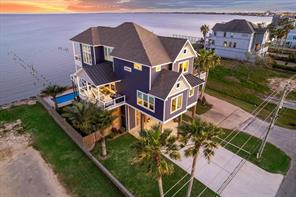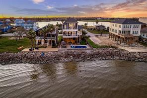 SPECTACULAR BAYFRONT ESCAPE WITH INCREDIBLE AMENITIES - EXPANSIVE OUTDOOR AREAS INCLUDING HUGE COVERED PATIO, BALCONIES ON BOTH LEVELS, PATIO WITH OUTDOOR FIREPLACE OVERLOOKING THE BAY, POOL/SPA, PERGOLA & TURF SIDEYARD. STEP INSIDE TO BEAUTIFUL WOOD FLOORS, A CORNER DINING ROOM OVERLOOKING THE BAY, COMPLETELY UPDATED ISLAND KITCHEN WITH HONED GRANITE & QUARTZ COUNTERS, DEN WITH FIREPLACE, GUEST BEDROOM, GAMEROOM/OFFICE ORR 4TH BEDROOM AND FULL BATH W/ WALK-IN SHOWER. 2ND LEVEL FEATURES A PRIMARY SUITE WITH FREESTANDING TUBS AND A MAIN PRIMARY SUITE WITH FIREPLACE, PRIMARY BALCONY, WALK-IN CLOSET & SPA BATH WITH HIS/HER VANITIES AND A WALKTHROUGH SHOWER W/ RAIN SHOWER HEAD. YOU CAN REST COMFORTABLY WITH 19' ELEVATION, STEEL BRACING, 150 MPH RATED DOORS, TANKLESS WATER HEATER, GENERATOR & ELEVATOR! THE IDEAL CORNER LOT ADJOINING A DEADEND STREET PROVIDES ADDITIONAL PRIVACY. SEABROOK FEATURES GREAT RESTAURANTS, AWARD WINNING SCHOOLS, FINISHED HWY 146 WITH OVERPASS AND SO MUCH MORE!