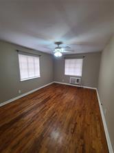 Ready for peace and quiet? If so, you'll love this place and sitting outside on your balcony under some of Houston's finest Live Oaks! Light and airy one-bedroom/one-bath upstairs apartment in the quaint Eastwood neighborhood (part of Greater East End). Beautifully-refinished original hardwoods. Living room is spacious and dons a brand-new A/C split unit. Bedroom has window unit plus a ceiling fan. Vintage tile in bathroom. Gallery kitchen with gas range for maximum cooking enjoyment. Shaded off-street parking and balcony in back. Washer/Dryer onsite. Ideal for someone wanting a quiet Montrose-like place at East End prices. Located less than half a mile to U of H and minutes from Downtown, Midtown, Montrose, and the Texas Med Center. Owner pays water, sewer, and lawn care. NO SMOKING. NO DOGS. Cat okay with pet deposit.