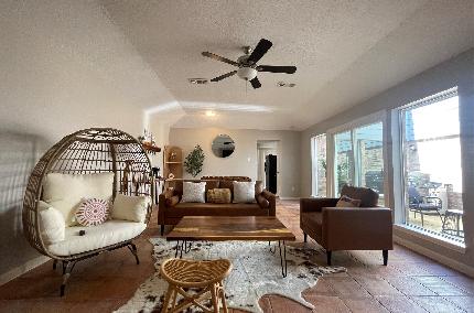 Welcome home to the perfect blend of urban convenience and peaceful neighborhood living. Located in a desirable gated community just minutes from major highways, shopping, and dining. This stunning home offers 3 bedrooms, 2.5 baths, and a versatile two-story floor plan designed for modern living. The home features a high ceiling, a modern open-concept design, creating a bright and an inviting atmosphere. Complemented by a chef’s kitchen with stainless steel appliances. Upstairs, you’ll find three spacious bedrooms, including an oversized primary retreat complete with double vanities, a soaking tub, a separate shower, and a large walk-in closet. The fully fenced backyard provides a private outdoor escape, perfect for relaxing or hosting guests. FURNITURE IS AVAILABLE FOR NEGOTIATION.