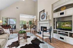 Welcome to your dream home in a secure, gated lake community! This spacious 3-bedroom home, complete with a dedicated home office (which could be used as a 4th bedroom), offers both comfort and functionality. Step inside to discover fresh new carpet upstairs and paint gracing the downstairs area. Abundant storage solutions ensure a clutter-free lifestyle. The luxurious primary suite, conveniently located on the main level, offers a wonderful ensuite with dual sinks, a vanity, and a generously sized walk-in closet. Enjoy seamless entertaining with a kitchen that flows effortlessly into the dining and living areas, highlighted by a cozy gas log fireplace. This patio lot offers the perfect setting for outdoor relaxation on your covered porch. Don't miss the opportunity to live in this exceptional property!