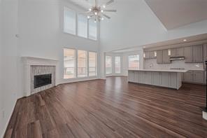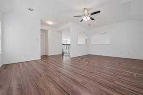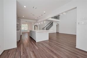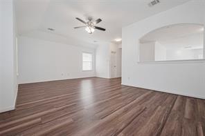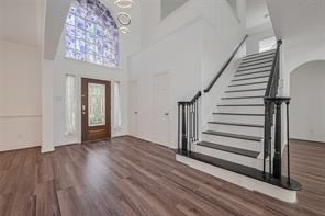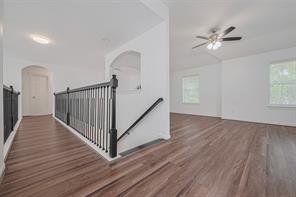 It is a beautiful gem in Woodbridge Community, recently upgraded to be open space with high ceiling and well kept from the sellers, kitchen island is the main heart of the house with living space and dining area. The high ceiling makes the house look more spacious and bright with a lot of natural light. The vinyl plank was installed throughout the whole house on the first floor, staircases and upstairs. The house was installed a water softener, two Carrier A/C systems with recently replaced board controllers and capacitors 2024 and 2025 and did the cleaned services, the filter was regularly replaced every 3 - 4 months. New proof was replaced in Oct 2024 and new fence for backyard May 2025. The house has detached overside garage and big covered patio.