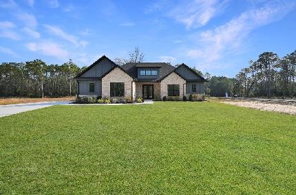 Welcome to The Abigail, a stunning single-story custom home set on 1.5 wooded acres. This place has 4 bedrooms and 3.5 bathrooms. You’ll love the open feel with soaring cathedral ceilings and high-end finishes throughout, and there’s no carpet anywhere! The gourmet kitchen features a waterfall island, a walk-in pantry, and custom cabinetry. Kick back on the covered front porch or chill on the extended back patio with its lovely wood-accented ceilings. The oversized backyard is excellent for adding a pool, barn, or workshop. Additionally, with a low tax rate, this home offers the perfect blend of luxury and country charm, all just minutes from the city.