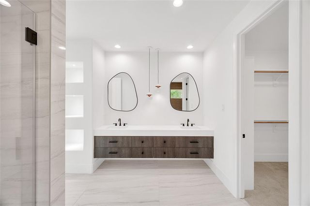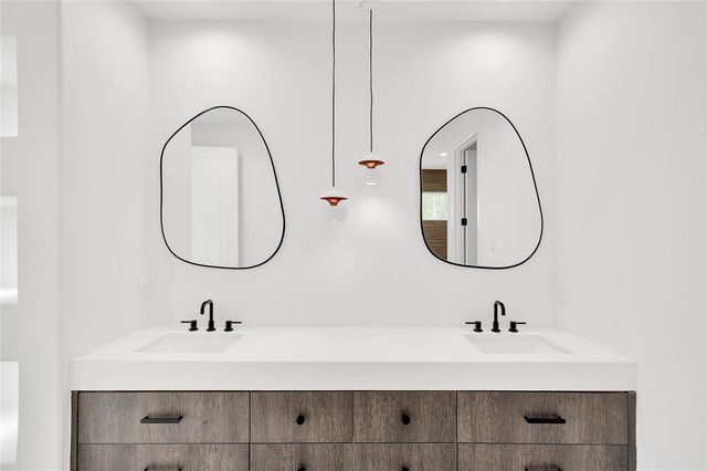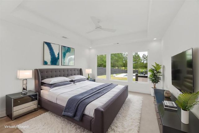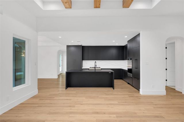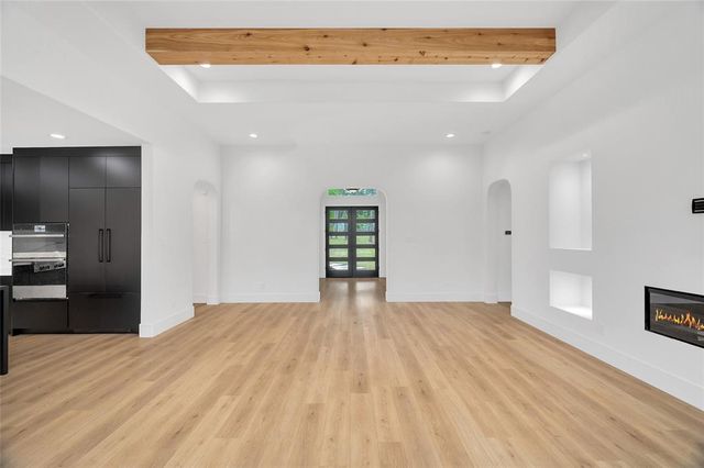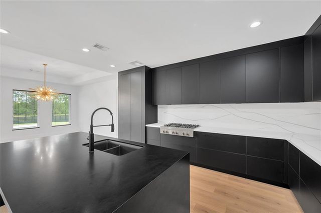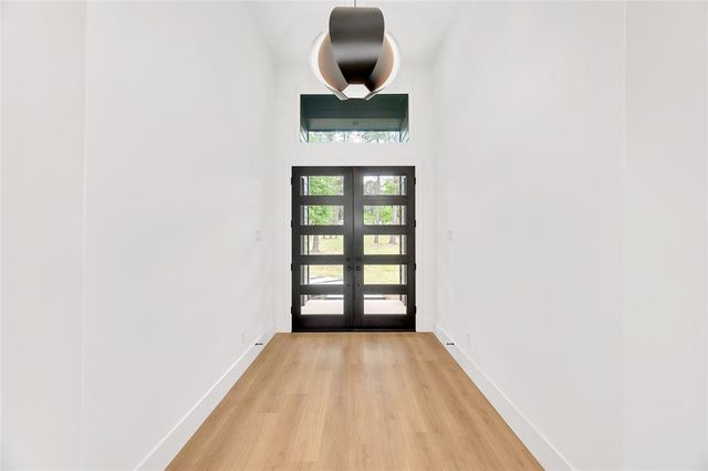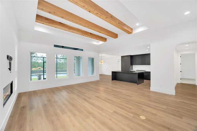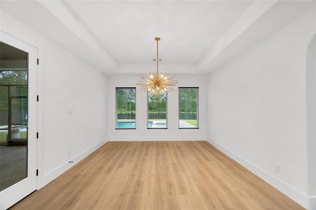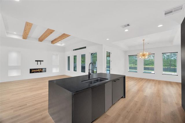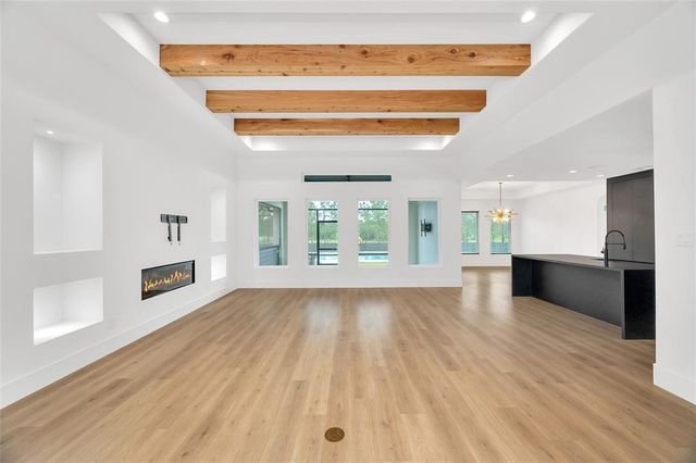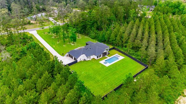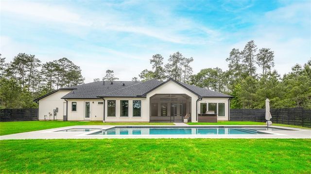 Modern Luxury on 1.22 Acres in Republic Grand Ranch. This custom home combines sleek modern design with luxurious comfort. Set on a lush 1.22-acre wooded lot, it offers privacy and generous greenspace. Inside, the home features a $10K European-imported Kalfire fireplace, a stunning quartz waterfall island, and a chef’s kitchen with premium JennAir appliances, including a 6-burner cooktop, built-in BBQ and griddle, integrated refrigerator and dishwasher, hidden pantry, and push-to-open cabinetry. Luxury vinyl plank flooring flows throughout the main living areas, and Porcelanosa tile enhances each bathroom. A whole-home Aquasana water filtration system ensures clean water throughout. The outdoor spaces impress with a screened porch, outdoor kitchen, and a sleek 2024 pool and spa, designed to complement the home’s modern aesthetic. No back neighbors! Surrounded by mature trees, yet minutes from city conveniences, this is a rare opportunity to own a refined, move-in-ready custom home.