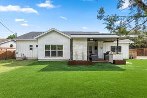 Modern charm meets Hill Country tranquility at this beautifully designed 3-bedroom, 2-bath home nestled on a private 0.255-acre lot in the highly sought-after Lake Travis ISD. Built in 2016, this 1,611 sq ft residence features a striking modern exterior, an expanded driveway, and a spacious garage—offering both style and functionality. Step inside to discover open-concept living with contemporary finishes, including sleek cabinetry, updated fixtures, and warm wood flooring. The kitchen flows seamlessly into the living and dining areas, perfect for both daily living and entertaining. Enjoy the Texas outdoors year-round on the custom covered back patio, complete with a mounted TV, wired for surround sound, and inviting outdoor living area—ideal for gatherings. With no HOA and an unbeatable location just minutes from Lake Travis, shopping, and dining, this property offers the freedom and lifestyle you've been looking for. Cavalier Canyon Drive—where modern comfort meets natural serenity.