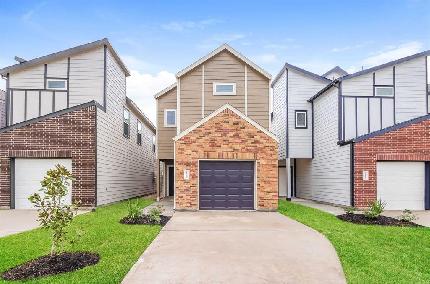 The Aura is a modern two-story home featuring 2 bedrooms and 2.5 bathrooms. On the first floor, you’ll find a spacious mudroom just off the one-car garage, a powder room near the entry, and an open-concept kitchen that flows into a bright, airy family room with soaring ceilings—perfect for entertaining. Upstairs, both bedrooms have ensuite baths and generous closets, with a laundry room conveniently located nearby. Additional features include wood-grain vinyl plank flooring, a fenced backyard, and a built-in sprinkler system. All homes are SimplyMaintained for a $100 monthly fee that includes front and back yard lawn care and exterior pest control. Villas de Estrella is a vibrant, townhome-style community in northeast Houston, with easy access to Highway 45 and Cypress Creek Parkway for convenient commutes.
