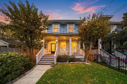 Welcome to this stunning 3 bed, 2.5 bath home boasting FIRST floor living, soaring ceilings, and hardwood floors! The updated kitchen features marble countertops, stainless steel appliances, and a cozy breakfast nook. The seamless open concept layout effortlessly connects the kitchen, dining, and living areas. Step through the expansive French Doors onto the private, fully fenced patio. The home features beautiful landscaping and a sprinkler system. The luxurious primary suite includes a private balcony, a separate seating area, a spa-like bathroom with dual sinks, and two walk-in closets. Two additional well-sized bedrooms share a bathroom with separate sinks. Conveniently located on the second floor is the laundry room. With a 2-car garage and a private driveway, parking is a breeze. This home's location is unbeatable, offering easy access to the Heights Hike and Bike Trail, Heights Mercantile, and an array of restaurants and shops within walking distance.