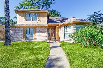 Spacious two-story home featuring 4 bedrooms and 2.5 bathrooms, situated on a generous 14,600 sq ft lot at the end of a quiet street. The open living area offers high ceilings, a wet bar, and a staircase overlooking the main living space. The kitchen includes an island with ample cabinet and counter space, ideal for everyday living and entertaining. Wood laminate flooring and carpet run throughout the home, complemented by two fireplaces—one located in the primary bedroom. The primary suite features a private bath with double sinks and a separate shower and tub. Three additional bedrooms are located upstairs. Exterior highlights include a detached garage and utility storage. Conveniently located near shopping, dining, and major highways while still offering privacy and tranquility.
