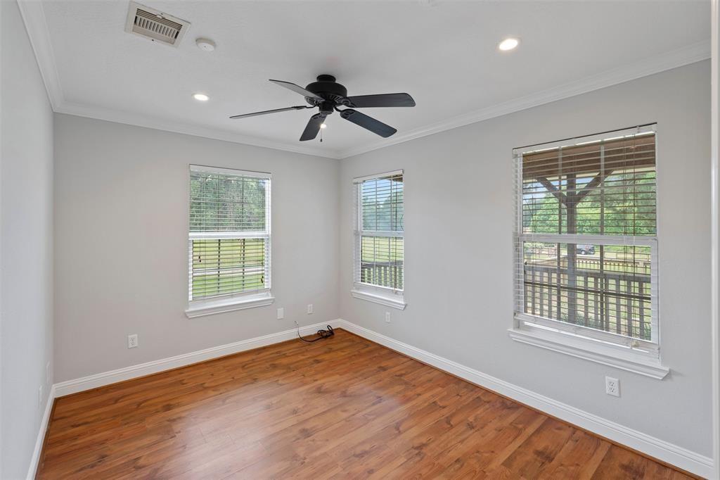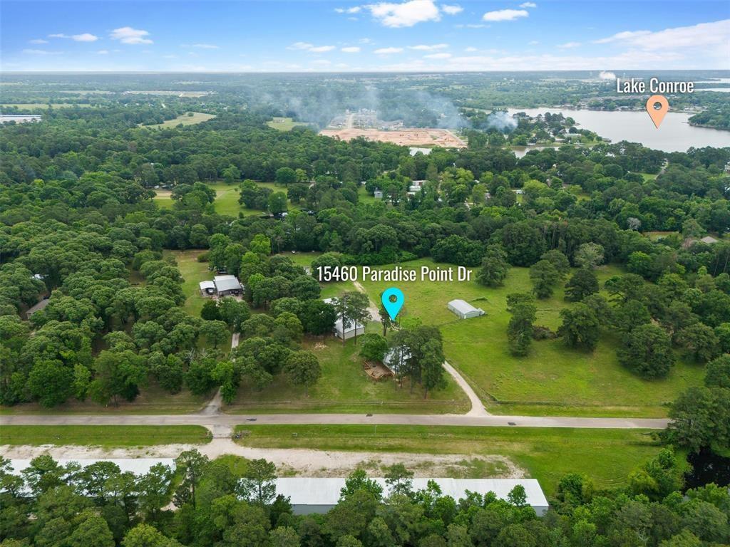 This beautiful property is located on Paradise Point Drive on 3 acres. The single story has two bedrooms, a study, and one bath. The home has just been freshly painted, and a brand new stove was just recently installed in the kitchen. A new AC unit was just recently installed on the home as well. Enjoy grilling or entertaining on your large outdoor deck. The property also includes a 3,542 sqft climate controlled shop with air tank for tools. Shop has four separate garage doors and also a 602 sqft car port, and an 1800 sqft RV open covered storage area attached. The shop was used to build custom F-1 racing boats but can be used for anything. There is also a flex/storage home located behind the shop. The boat ramp for Lake Conroe is only a minute drive away to the marina. The property is conveniently located near 45 with easy access to Willis, Conroe, and The Woodlands. Having 2.999 acres this close to the water while still being unrestricted leaves endless possibilities.