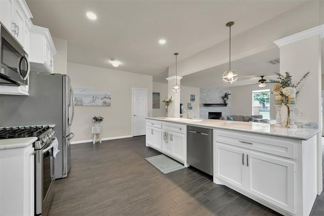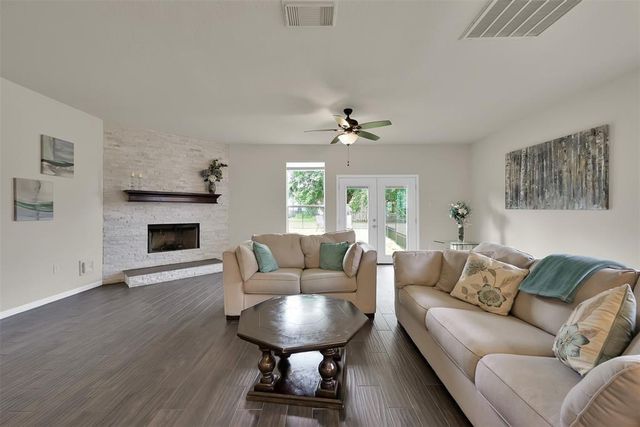 Welcome home to the gated golf community of April Sound on Lake Conroe! ~ Everything you need to relax in this recently updated 3 bedroom, 2.5 bathroom home with a 2 car garage. Kitchen (complete with bar, large island, breakfast nook, marble counters, stainless steel appliances including refrigerator) opens to family room with gas fireplace and French doors that lead to the fenced backyard. Don't miss the second fenced yard tucked away on the side of the house. Upstairs relax in your jacuzzi tub in your spacious primary suite. Subdivision amenities include playground, pavilion, dog park, pool, & marina. Conveniently located close to dining, medical, & entertainment. Schedule your tour today!