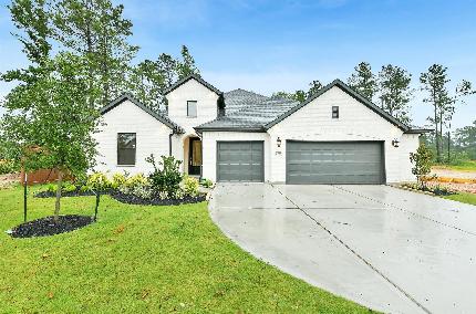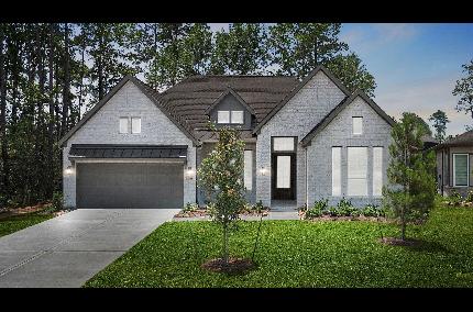 NO REAR NEIGHBORS! OVERSZIED PATIO WITH SLIDING PATIO DOORS! LUXURY KITCHEN! Ceilings So High They Deserve Their Own Zip Code The Brentwood plan delivers 4 bedrooms, 3 bathrooms, and 2,718 square feet of effortless style in a one-story layout. Vaulted ceilings with beam detail make a striking first impression, and the electric fireplace adds modern warmth. The kitchen features a 12-foot island ideal for entertaining, while sliding patio doors open to an oversized covered patio with peaceful greenbelt views and no rear neighbors. Oversized bedrooms and a flexible bonus room create space for work, play, or relaxation. Located in Evergreen, a nature-centered master-planned community surrounded by trees and just 15 minutes from The Woodlands. Currently under construction with completion expected March 2026.