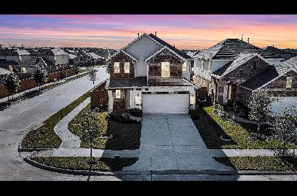 New Construction - Chesmar Homes "Springfield" Plan. This charming two-story home offers 3 bedrooms, 2 baths, and a 2-car garage, with both a 1st-floor covered patio and a 2nd-floor covered balcony. The 2nd floor living opens to a naturally lit open floor plan, featuring a kitchen with 42" upper cabinets, 3 CM quartz countertops, and an eat-in island. The main suite includes a bath with dual vanities, an oversized shower, and a walk-in closet with convenient laundry access. Enjoy upgraded wood tile flooring throughout the main living area. Additional features: stainless GE appliances, PEX plumbing, 2” faux-wood blinds, double-pane LoE3 windows, energy-efficient lighting, automatic garage door opener, all four sides brick on the first floor, full gutters, fully sodded lot, and a sprinkler system with landscaping. For more information, contact Chesmar Homes in the Balmoral Courtyard Collection, where every home is in a cul-de-sac.