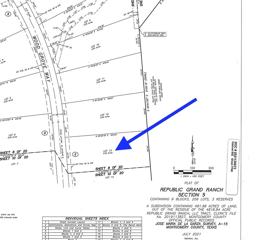 1.99 ACRES > MATURE MIX OF TREES > NO EASEMENTS > Located on the outskirts of Willis with great schools and nearby shopping. Large lot wooded community with gentle rolling hills. Peaceful privacy. You will never be crowded by neighbors. Republic Grand Ranch is a large lot, wooded community in the rolling hills. Country lifestyle for your custom forever home. Trees, paved roads, water, HIGH SPEED fiber optic internet & underground power through out. Covered pavilions, parks, ponds, playgrounds, BBQ areas. Minutes from shopping, dining, schools, hospitals, and entertainment. Low taxes - No MUD tax. Average elevation is 400’ ASL. Plenty of greenspace and trails for hiking, biking and horseback riding.