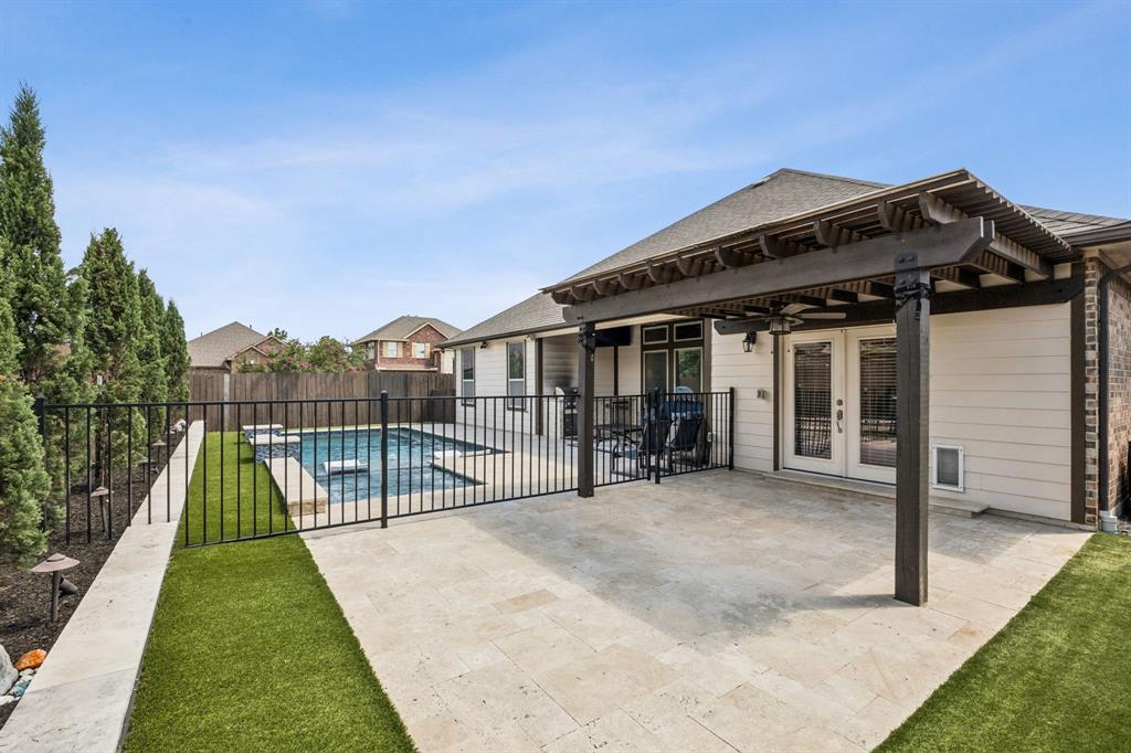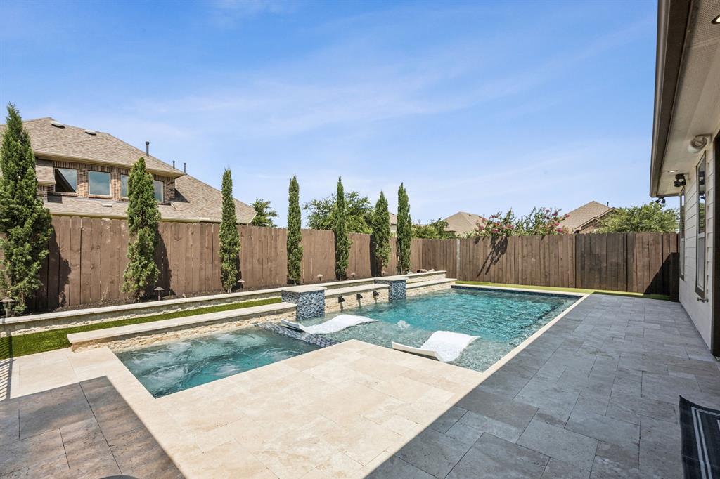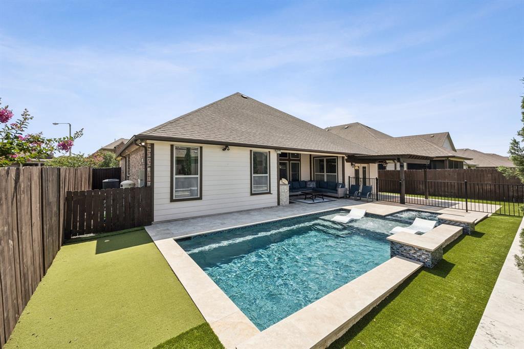 Nestled in the southern section of Tuscan Lakes, this charming 4-bedroom, 3-bathroom single-story home offers an ideal blend of comfort and style on a coveted corner lot. Step inside to discover an expansive open-concept living space, seamlessly connecting the large kitchen, dining area, and living room – perfect for entertaining and everyday living. The entire home boasts easy-to-maintain tile and hardwood flooring, ensuring effortless cleanup and a consistently polished look. Beyond the interior, a private backyard oasis awaits. Enjoy endless summer days in the sparkling pool, unwind in the soothing hot tub, and host unforgettable gatherings at the fully equipped outdoor kitchen and dedicated seating area. For ultimate peace of mind, all outdoor amenities are safely enclosed behind a secure safety fence. Schedule your private tour today or stop by our open house Saturday June 28th from 1 - 4!