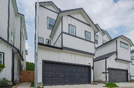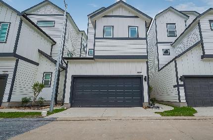 This 3-story residence has 3 bedrooms, 2 Full and One ½ baths, 2 Flex Spaces and an extended 2-car garage. This floorplan is designed for entertaining with it’s true open concept design. Beautifully floorplan, high ceilings, large closets, and a wide covered patio overlooking the yard. The entire 2nd floor features a flex space, and a large Primary En-suite. The Primary bath is generously sized for a spa like experience including a free-standing antique style soaking tub overlooked by its large walk-in tile surround shower. The huge dual sided closet conveniently opens to the 2nd floor laundry room! Additional features include exterior gas grill connection, wired for a car charger, ceiling fans, 2” blinds, vinyl plank, NO CARPET. Just minutes to City Centre and Memorial City Convenient guest parking is available in the community, enjoy easy access to I-10, Beltway 8, 610 Loop, & Hwy 290, just 8 miles to the Galleria. WATER/TRASH INCLUDED IN HOA. YARD w/ SOD. Photos are representative.