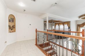 Never Flooded! Stunning 6-bed, 5.5-bath estate with over 5,400 sq ft plus 1,100 sq ft of finished attic space. Grand double-door entry opens to a chandelier-lit foyer, travertine floors, crown molding, and soaring ceilings. Features include a private study, game room, theater, wet bar, and open living/dining with mural and pool views. Gourmet kitchen boasts a marble island, gas cooktop, stainless appliances, and reverse osmosis system (2021). Luxurious primary suite offers a whirlpool tub, dual walk-in closets, and custom shower. Enjoy the backyard oasis with pool, spa, built-in grill, and sink. Recent upgrades: 67 solar panels & 2 Tesla batteries (2021), 3rd-floor TRANE A/C (2021), 2nd A/C (2025), pool filter (2025), full roof replacement (June 2024). Oversized 3-car garage. Move-in ready and energy efficient—ideal for living and entertaining. Call now—this home won’t last!