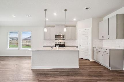 Brand new, energy-efficient home available NOW! Debate what to wear in the Preston's impressive walk-in closet located just off the primary suite bath. Pebble cabinets with white quartz countertops and white backsplash, grey EVP flooring with multi-tone carpet. From the low $300s. Located off SH-336 in Conroe with premier access to I-45, Stewart’s Ranch makes it easy to work and play. Let the kids run at the future playground and pavilion or explore the nearby 201- acre Carl Barton Jr. park. We also build each home with innovative, energy-efficient features that cut down on utility bills so you can afford to do more living.Each of our homes is built with innovative, energy-efficient features designed to help you enjoy more savings, better health, real comfort and peace of mind.