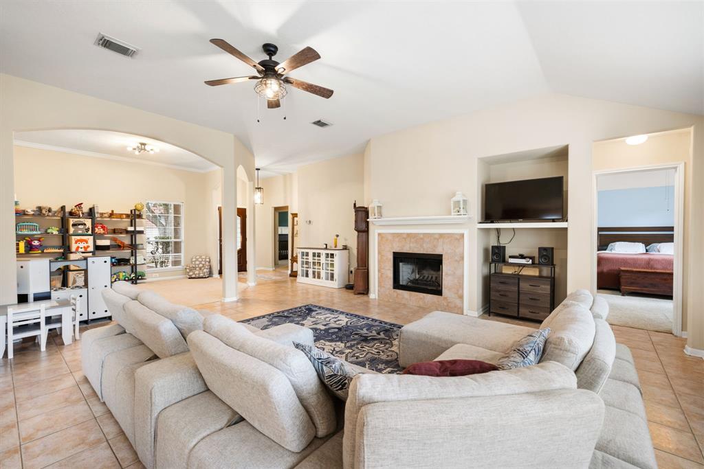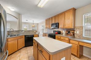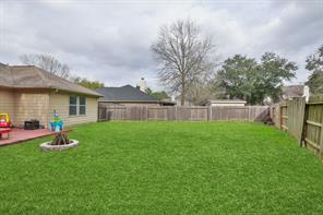 This home is an amazing 1 story, 4 bedroom. Open floor plan with family room, dining room, kitchen and breakfast room. Lots of windows - light and bright. Kitchen is complete with island, 5 burner gas range and oven, breakfast bar, lots of cabinets and counter space. Primary bedroom has an ensuite bathroom with separate soaking tub and shower and large closet. Secondary bedrooms all have nice closet space. Secondary bathroom has a tub shower combination. Very large, fenced backyard with a wood deck. Pretty subdivision has a lake and walking path. Pool and clubhouse. Very convenient location with easy access to 290. Great Cy-Fair schools. Must see!