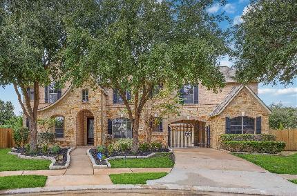 Located in a gated community within Stonegate, this stunning two-story home offers 5 bedrooms, 4 full baths, and 4,813 sq ft of elegant living space. NEW ROOF - 2024. Recently remodeled kitchen with undermounted cabinet lighting, new kitchen flooring, new dishwasher, water softener and a reverse osmosis system. Water heaters replaced in 2021. Washer, dryer and refrigerator included. Featuring a gated driveway and a half-circle driveway, boasts both exceptional curb appeal and privacy. Detached two car garage with side storage space, and covered walkway to house. Inside you'll find formal living and dining rooms, a study and a spacious game room upstairs. Relax outdoors on the covered second-floor balcony with a view of the community lake. Convenient to top-rated schools, shopping, and dining - this move-in ready home is a MUST SEE! No Flooding.