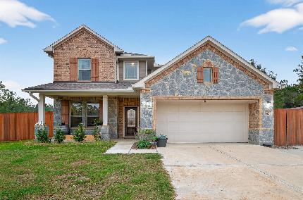Nestled on nearly an acre, this picturesque two-story home offers tranquility at the end of a cul-de-sac. The Kendall "Stonewall" model boasts a stone elevation, 42" cabinets, energy efficient slate appliances, and a designer backsplash. The primary suite on the 1st floor features high ceilings, a separate tub and shower, and a walk-in closet. Upstairs, find 3 bedrooms and a game room. The property allows for a dream shop, boat, RV, or trailer storage. Whole home water filtration system, front yard sprinklers, gutters, structured wiring, USB outlets, and media outlets are among the many upgrades. Don't miss out on this gem! Contact me today to schedule a showing.