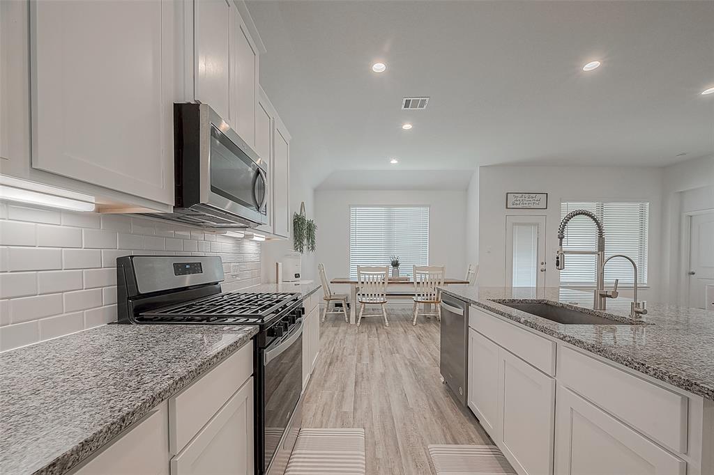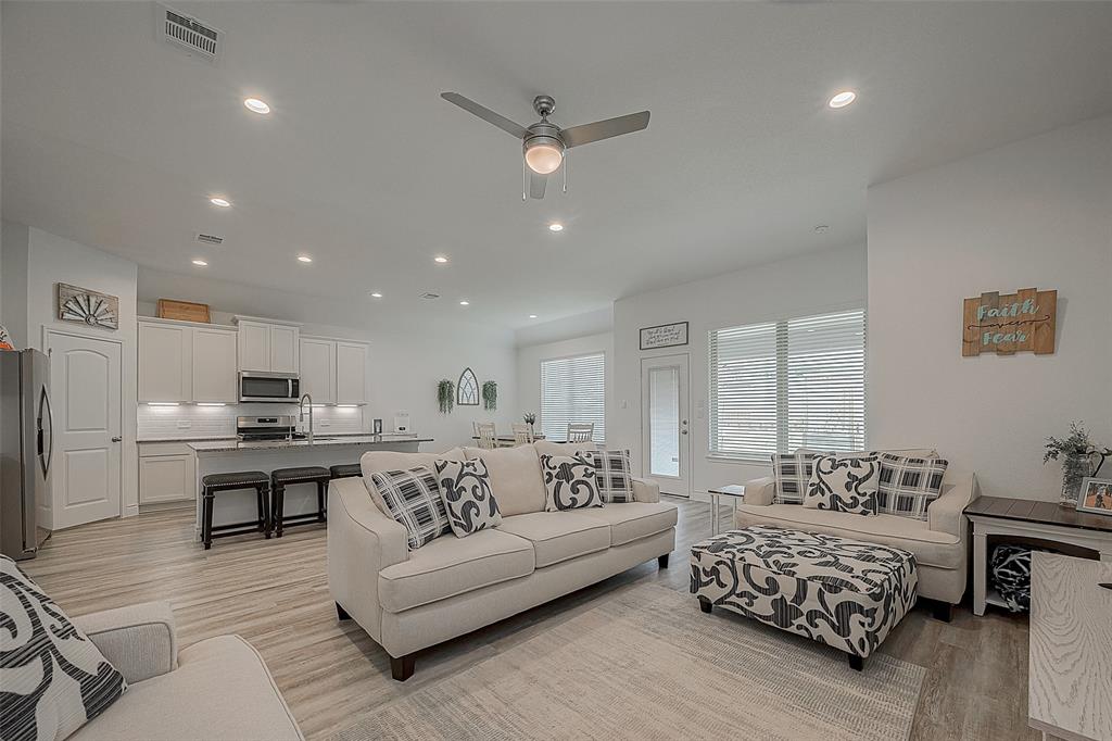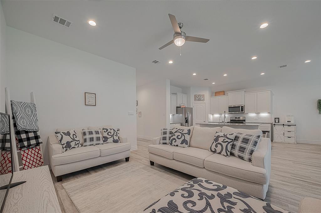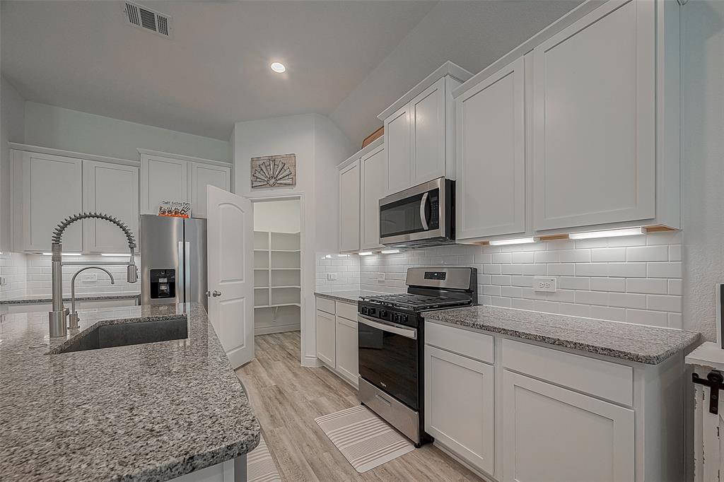 Assumable VA Loan at 5.5% IR - Charming 1 story home in the established neighborhood of Fairwater. Well maintained and almost like new. This open floor plan offers an island kitchen w/granite counter tops, bright white cabinets, stainless steel appliances, undermount lighting and the refrigerator is included. Spacious primary suite including separate shower/tub, double sinks and large walk in closet. Easy to maintain vinyl plank floors through out the home, with tile in wet areas and carpet in bedrooms. Sprinkler system, gutters, on demand water heater, Ceiling fans in all bedrooms and a raised garden is all that's needed in this home. Enjoy evenings on the back patio which offers a swing. So much to offer so don't wait.