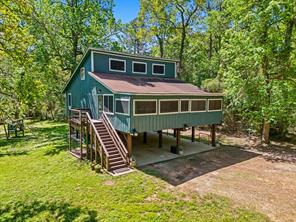 This delightfully remodeled, country home is located at the end of a quiet cul-de-sac. Home is stilted by preference of original owner - not located in a floodplain. The charming residence centers around the spacious kitchen, complete with granite countertops, a deep basin sink, and matching stainless steel appliances. The three full bathrooms are freshly renovated. This stilted hide-away boasts gorgeous views of the property's park-like landscaping, woodland areas, and a scenic pond. The 7+ acre site is homestead-ready with a chicken coop, a lean-to and several other livestock pens. The home sits above a large concrete pad, generous enough to house 4+ cars/trucks, serve as a pavilion for outdoor entertaining, or could become an ideal workshop. Fiber optic internet is available. All appliances stay with home, including the outdoor playscape & shipping container. With its own well, septic and complete privacy, this property is the full package, a farmhouse dream.