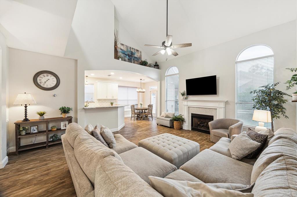 Welcome to this updated 2-story home with a pool & spa in the sought-after Copper Lakes community. A dramatic two-story entry and soaring family room create a grand first impression, enhanced by elegant stair details and abundant natural light. The downstairs owner's retreat offers a peaceful escape with a charming bay window and a beautifully updated en-suite bath. Upstairs, all secondary bedrooms feature walk-in closets and a spacious game room. The open-concept kitchen showcases updated cabinets, countertops, and a breakfast bar seamlessly connecting to the family room. The backyard is a true retreat with a large covered patio and heated pool/spa. Recent updates include tile floors and carpet, interior paint in 2021, exterior paint in 2022, roof replacement in 2019, and a fence in 2018. Features smart home upgrades, dual Nest thermostats, and exterior Ring cameras. Located in a desirable community with scenic lakes, walking trails, tennis and pickleball courts, pool, and splashpad.