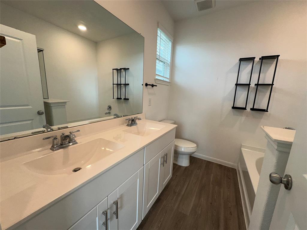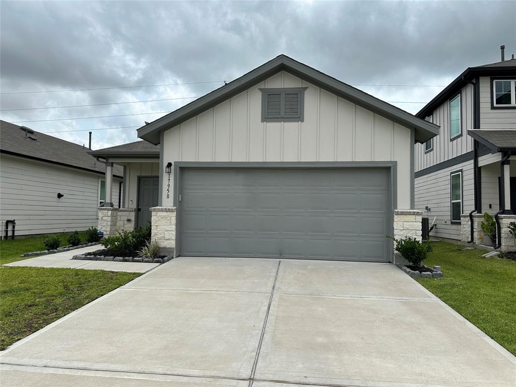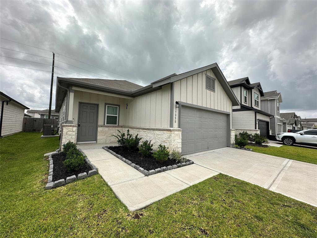 Single-story home in the desirable Windsor Park community of Hockley, TX. Built in 2023, this modern 3-bedroom, 2-bath home features a thoughtfully designed layout. Step inside to a spacious entryway that includes a convenient linen closet and direct access to the 2-car garage. Just off the main hallway, you'll find a versatile home office or study to the right. Two secondary bedrooms are located nearby and are separated by a full bathroom, offering privacy and functionality. The heart of the home is the open-concept living and kitchen area, which flows seamlessly into the dining space and overlooks the backyard. The primary suite is tucked away at the rear and features an ensuite bath complete with dual vanities, a soaking tub, and a separate walk-in shower. The community features a pool, dog park, outdoor kitchen area. *Online apps only, please submit all required documents at time of application** **$100,000 Liability to Landlord Insurance Policy Required**