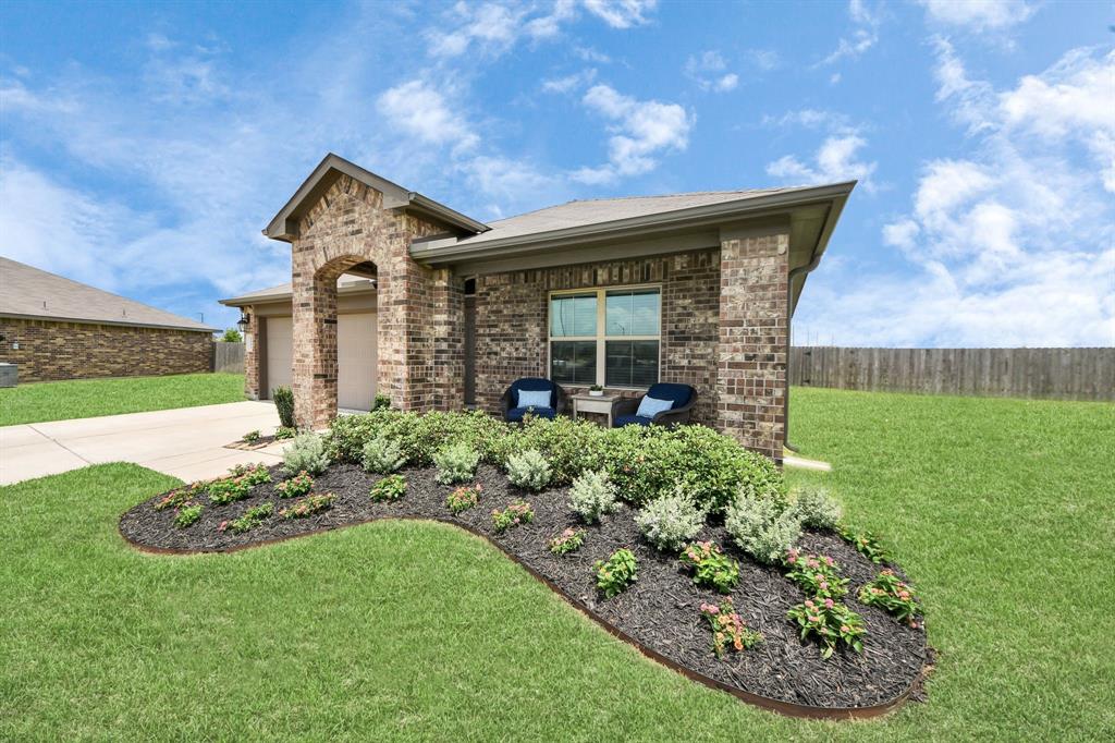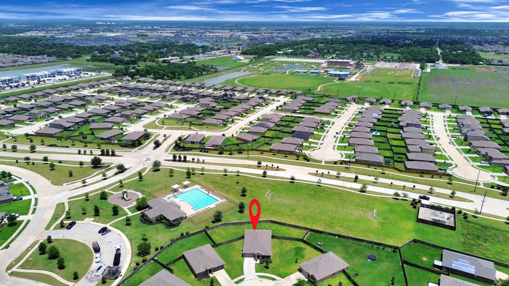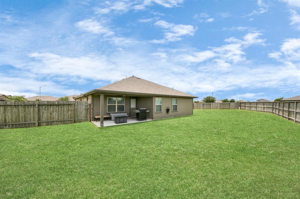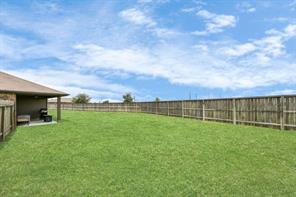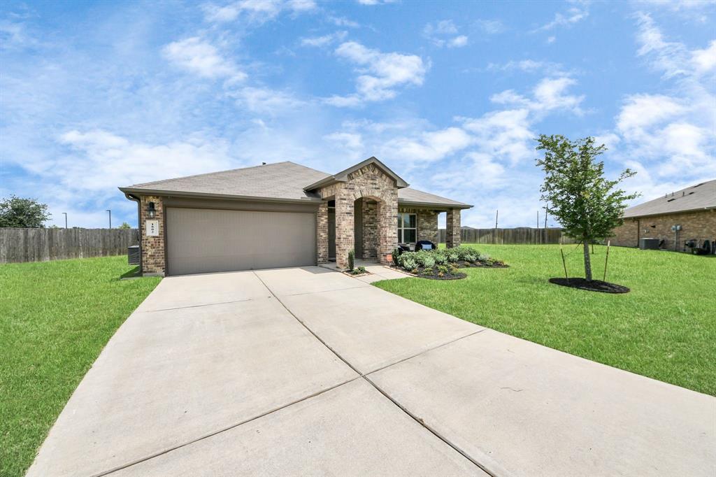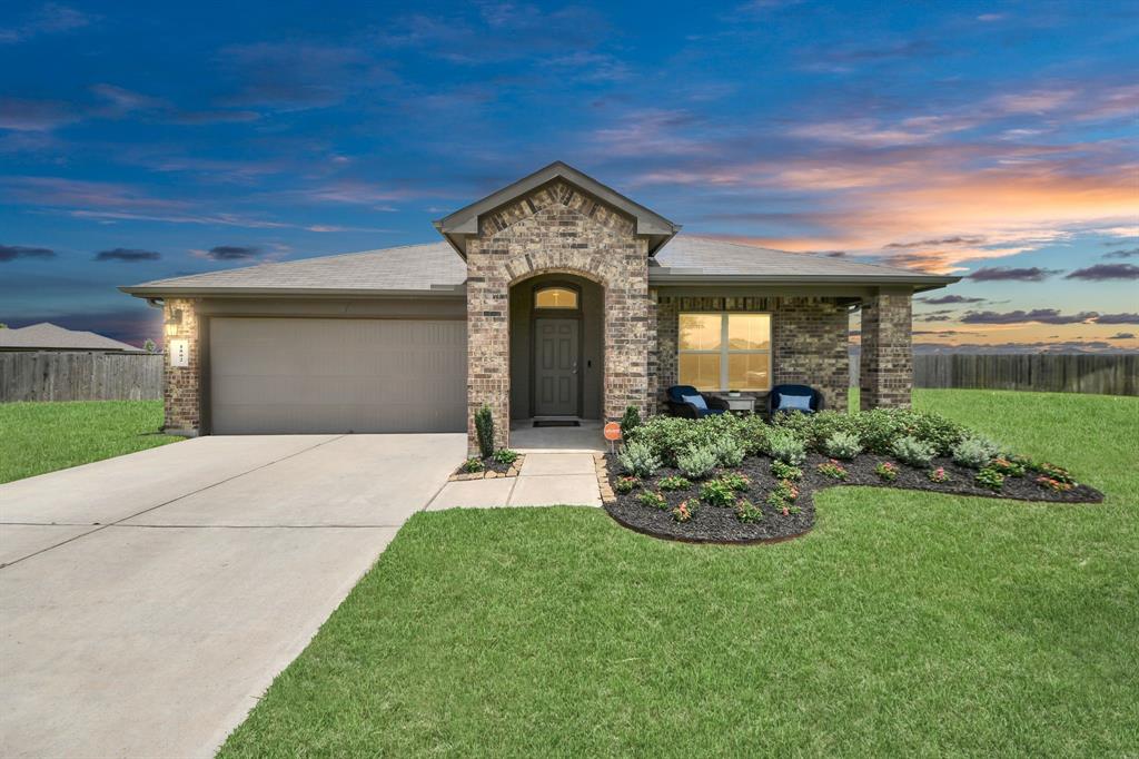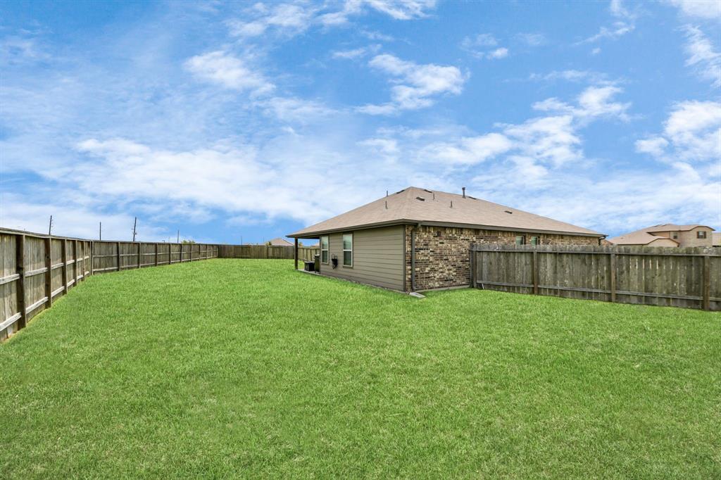 Welcome to this beautifully maintained 4-bedroom, 2-bath home nestled in the desirable Sunset Crossing community of Rosenberg. Built in 2019, this spacious home sits on an impressive 14,000+ sq ft lot, offering plenty of room to relax, entertain, and enjoy the outdoors. Located on a quiet cul-de-sac and within walking distance to a splash pad, resort-style pool, playground, and soccer field, this home offers both privacy and convenience. You'll love the inviting front porch, lush landscaping, and full sprinkler system in the front and back yards. Inside, enjoy an open, functional layout with granite countertops, a bright kitchen, and spacious living areas. Step outside to your oversized covered patio and expansive backyard-perfect for gatherings or peaceful evenings under the stars. With plenty of space to add a pool, garden, or playscape, this backyard is ready for your dream outdoor setup.
