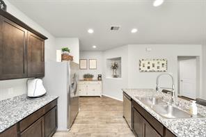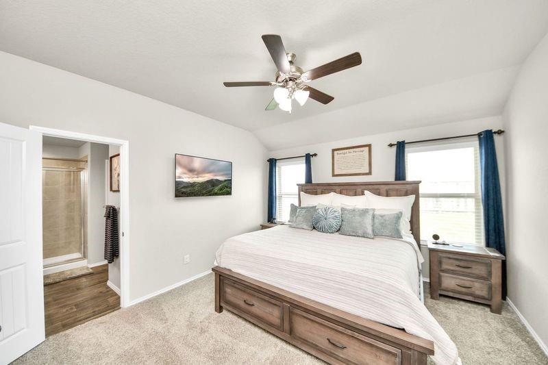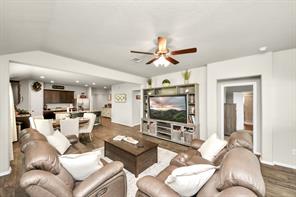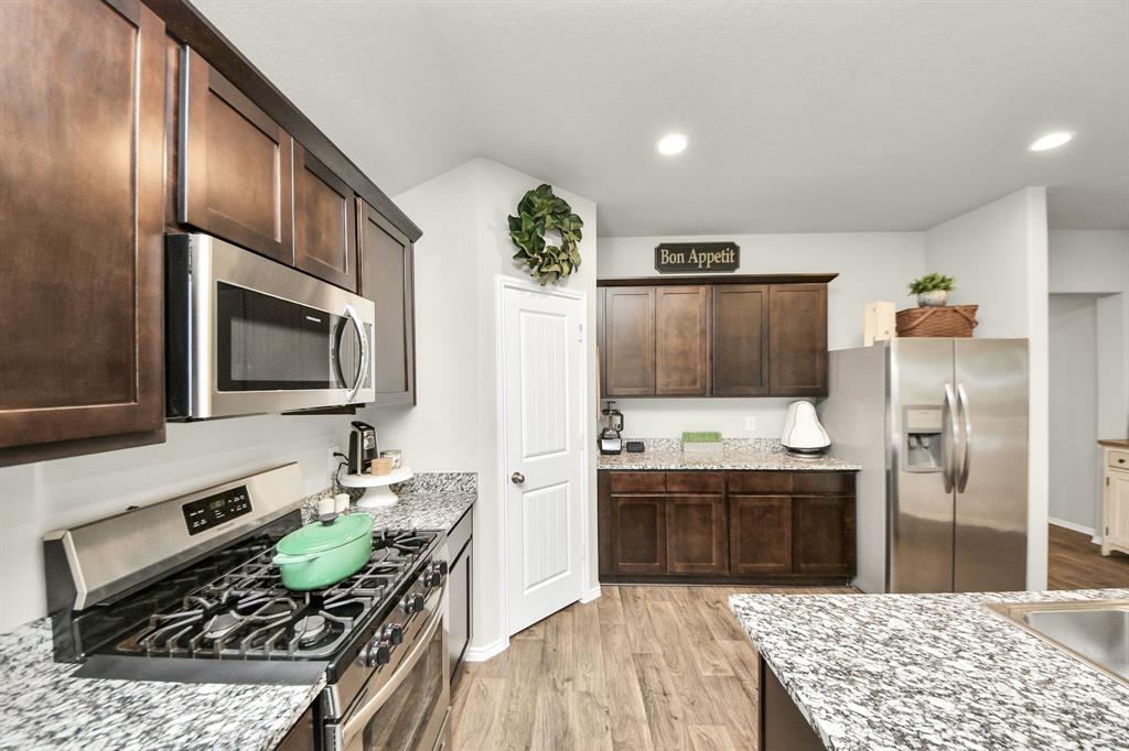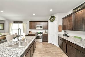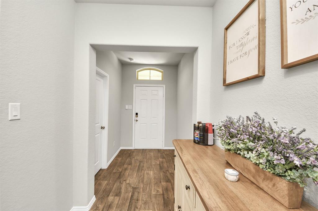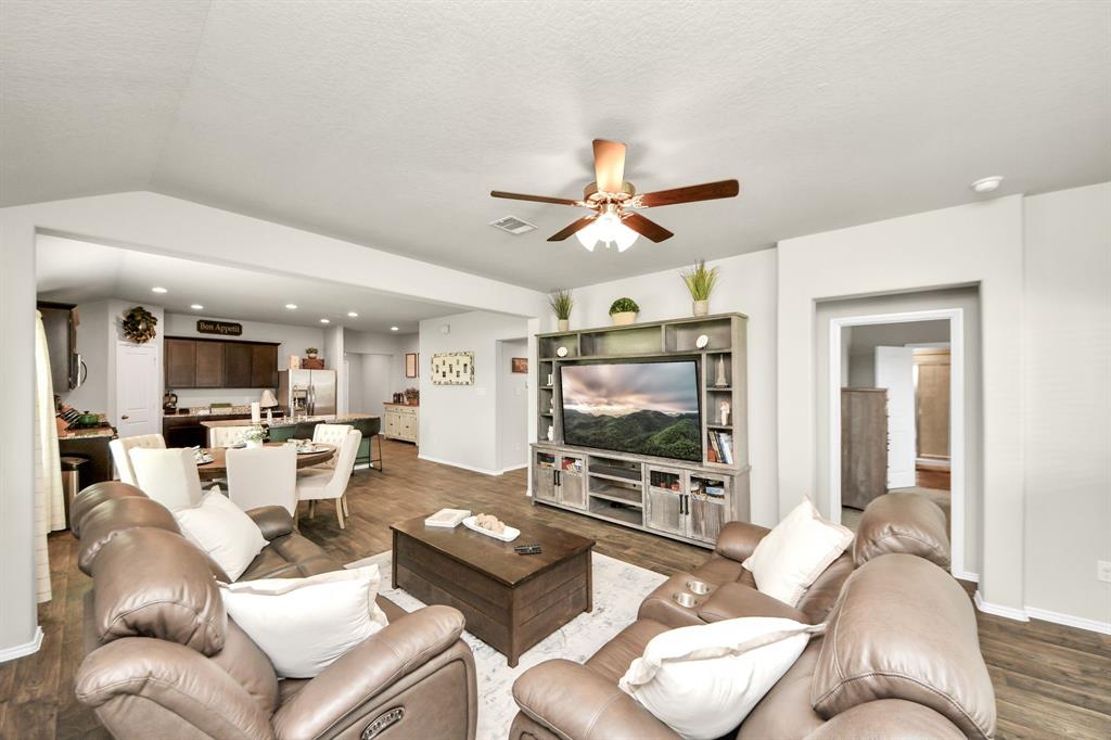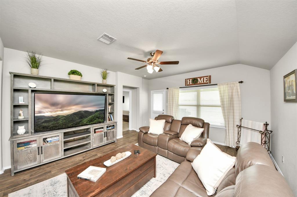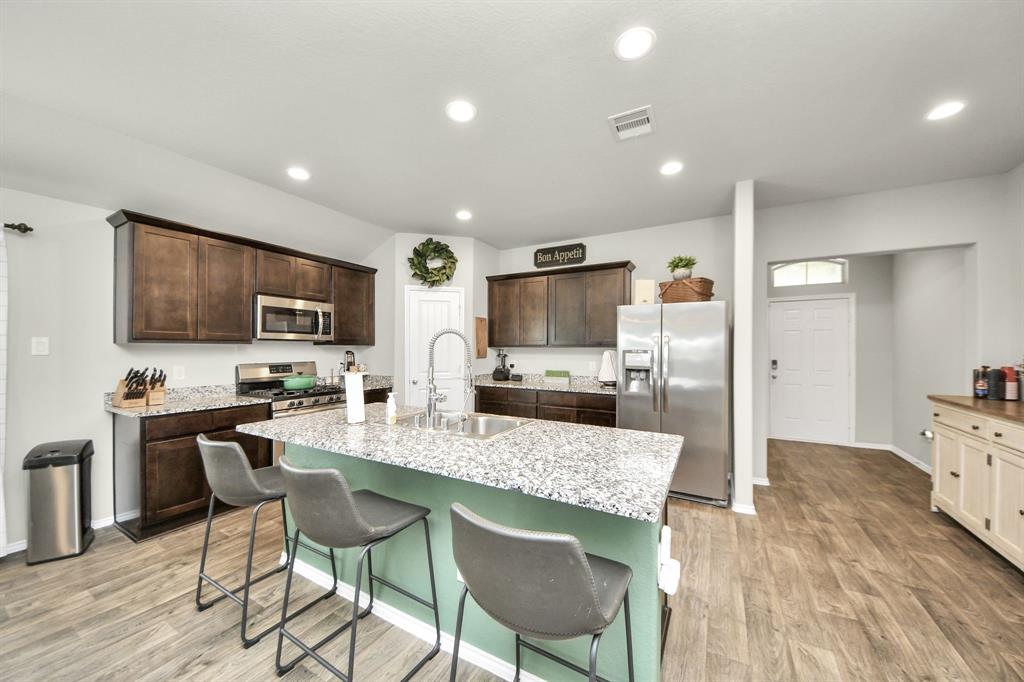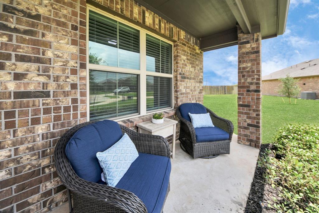 Welcome to this beautifully maintained 4-bedroom, 2-bath home nestled in the desirable Sunset Crossing community of Rosenberg. Built in 2019, this spacious home sits on an impressive 14,000+ sq ft lot, offering plenty of room to relax, entertain, and enjoy the outdoors. Located on a quiet cul-de-sac and within walking distance to a splash pad, resort-style pool, playground, and soccer field, this home offers both privacy and convenience. You'll love the inviting front porch, lush landscaping, and full sprinkler system in the front and back yards. Inside, enjoy an open, functional layout with granite countertops, a bright kitchen, and spacious living areas. Step outside to your oversized covered patio and expansive backyard-perfect for gatherings or peaceful evenings under the stars. With plenty of space to add a pool, garden, or playscape, this backyard is ready for your dream outdoor setup.