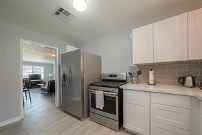 Discover this Charming Coastal Home, within 1 mile from the beach, easy access to 61st Street, I-45 and Offatts Bayou. Few minutes away from Waterpark, Moody Garden, Palm beach, Church, GLS airport. Enjoy shopping, dining, and entertainment nearby. Garage converted to 4th bedroom. This delightful home offers the perfect blend of comfort & convenience. Complete renovated with Stylish Tile Plank flooring throughout, Neutral Paint, 4 good size bedrooms, upgraded 2 full bathrooms, Gorgeous Quartz Countertop in kitchen, Cozy living spaces for relaxation and gatherings. Huge back yard. All furnitures and appliances are negotiable.