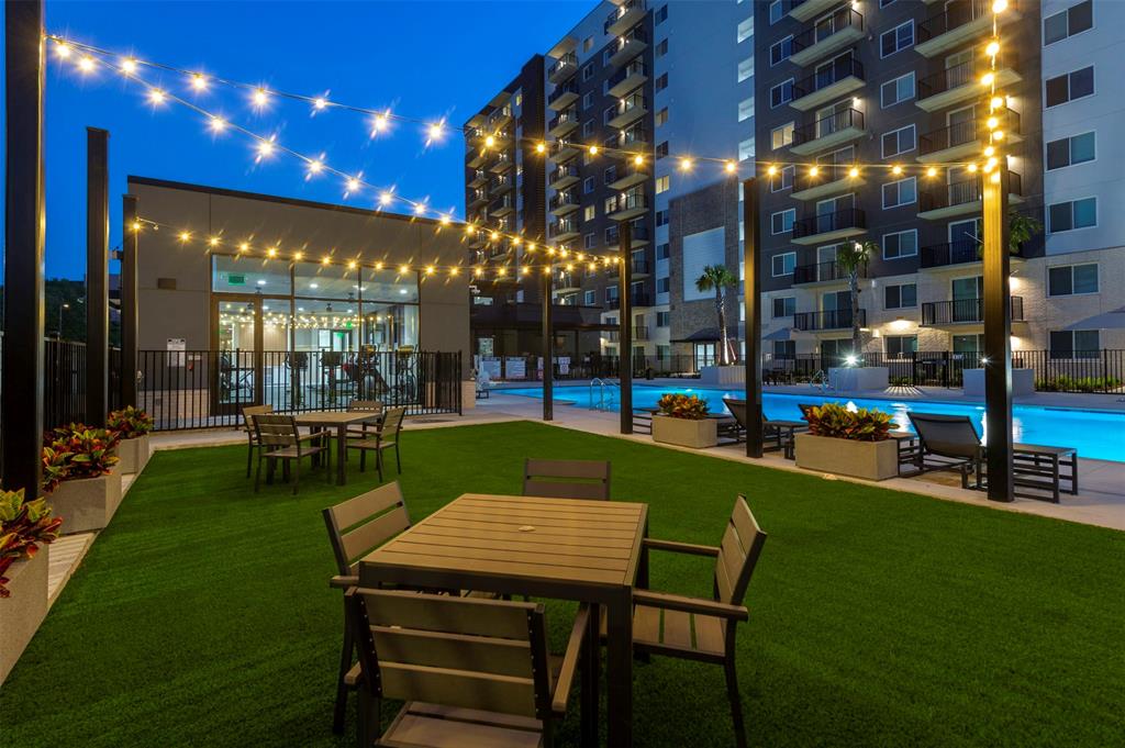 Experience the best in luxury living with our extensive range of community amenities, including a state-of-the-art fitness studio, an entertaining resident lounge, and a swimming pool descending 6ft underwater. Our business center is equipped with Zoom rooms and conference spaces, while the indoor/outdoor lounge with grilling stations offers the perfect setting for social gatherings. We offer bicycle storage, a playground area, and complimentary WiFi in common areas. Add'l conveniences include reserved parking, an on-site management team, on-site dry cleaning pick-up and drop-off, concierge service, and a pet park. Our apartments feature high 9’ ceilings and open floorplans designed for maximum efficiency. Enjoy elegant granite countertops, stainless-steel appliances, and in-unit full-size washers and dryers. Our wood-inspired, sound-absorbing flooring, soft-close, custom-designed cabinetry, and double pane and impact-resistant windows ensure a serene and stylish living environment.