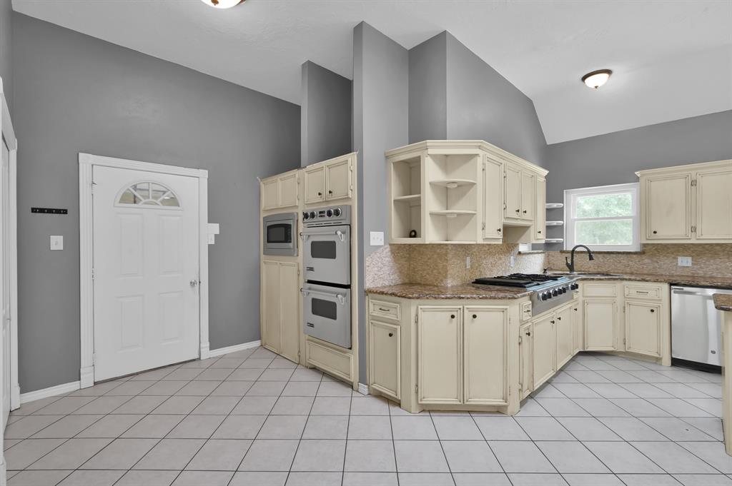 Welcome to you dream home! Spacios and amazing 4/2/2 home with formal dining, office, in Carriage Hills on ONE acre! 4 sides brick. HUGE outdoor patio space. Freshly landscaped! Standby generator is hardwired to house, RV or boat parking with 30 AMP breaker. Stacked stone fireplace. All tile or laminate flooring except 2 bdrms. JennAir appliances, dble oven, granite counters, antiqued cabinets. Surround sound! New rain gutters! Work from home in style with a dedicated home office. Step onto the massive back porch overlooking mature trees, offering unparalleled privacy. Workshop/barn in backyard. Plus, indulge in community amenities like the pool and park just moments away. This is more than a home—it's a haven. No MUD, low HOA.