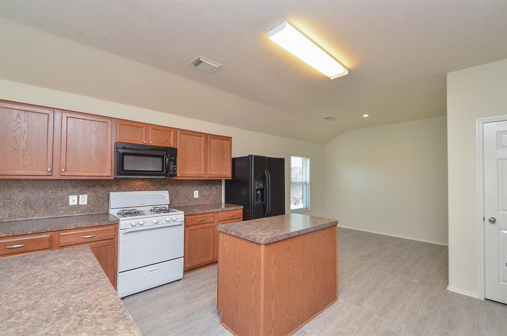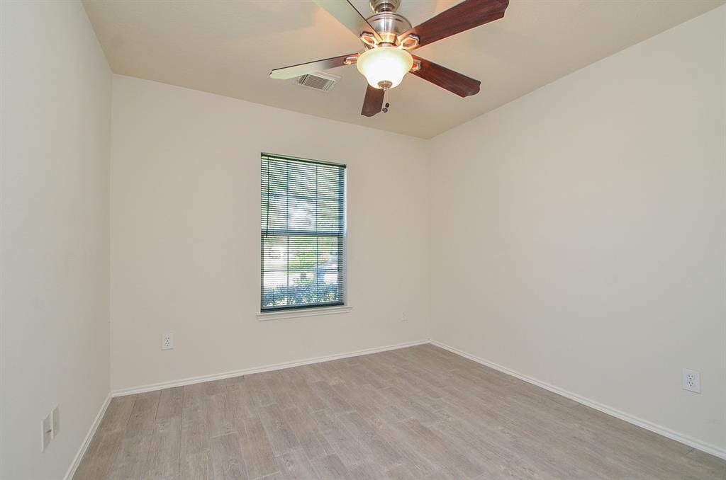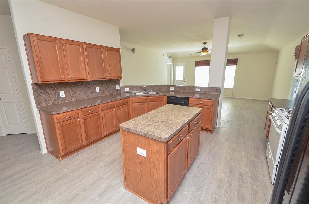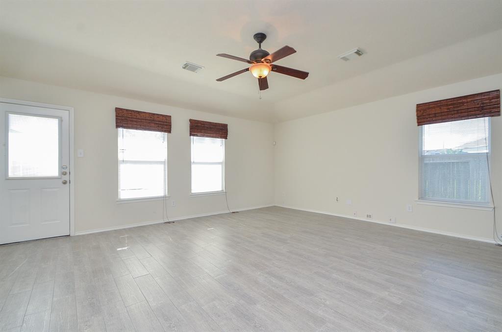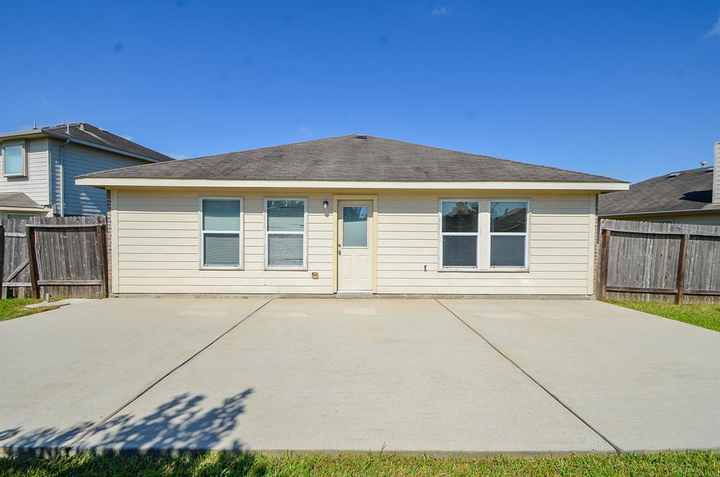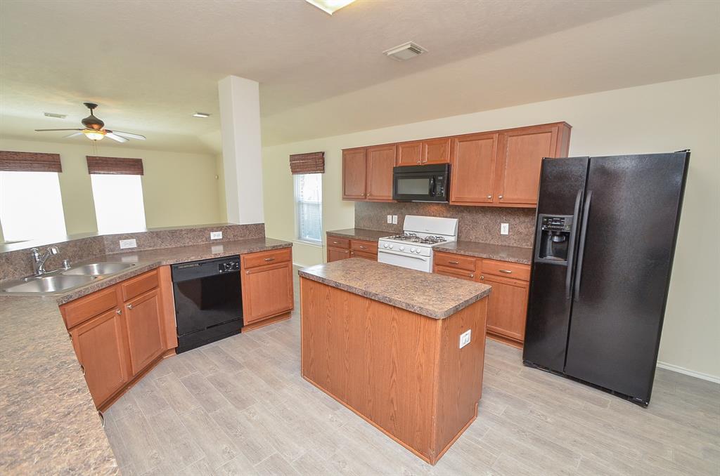 Nice family home is move-in ready. Beautiful wood-look tile flooring throughout the home. Large island kitchen with multi-purpose eating area and breakfast bar. Open floor plan with huge family room and lots of natural light. Spacious kitchen with new range/oven going in. Master bedroom with en-suite bath with separate shower and garden tub. Split floor plan with two guest bedrooms and guest bath in the front. Ceiling fans and double-paned windows with digital thermostat. New refrigerator, new washer, and new dryer all included. Fenced backyard with large patio and greenspace. Highly rated Fort Bend schools. Easy access to Westpark Tollway. Come home to Twin Oaks Village!