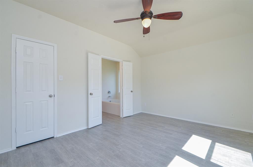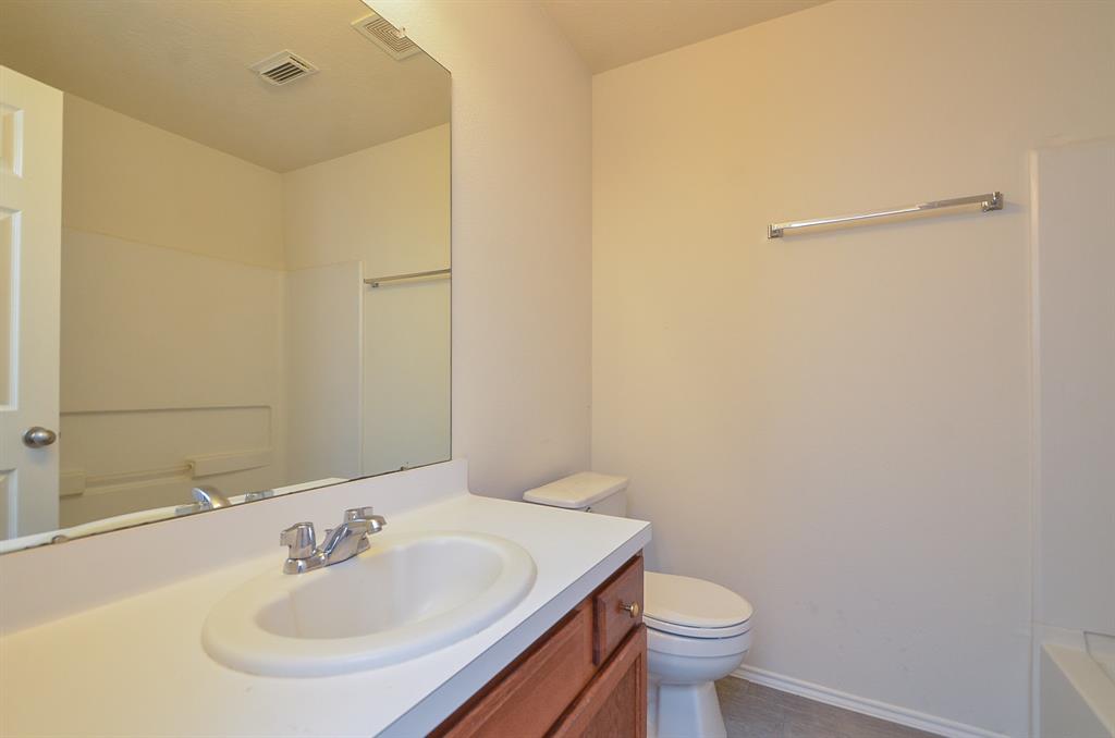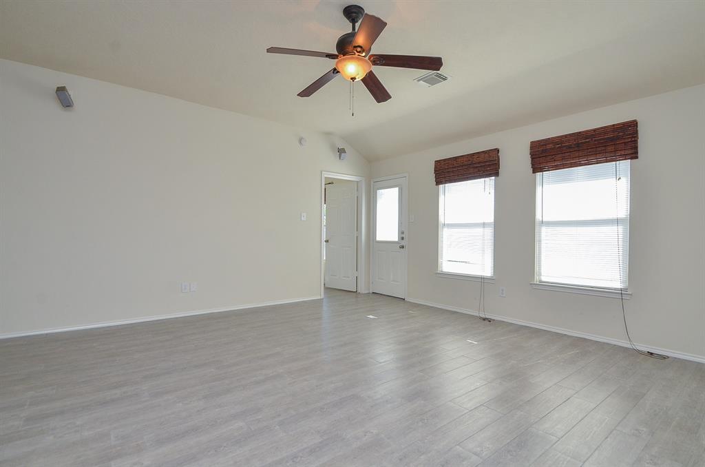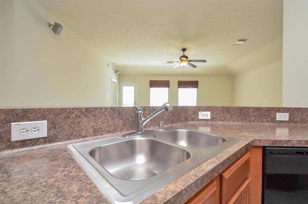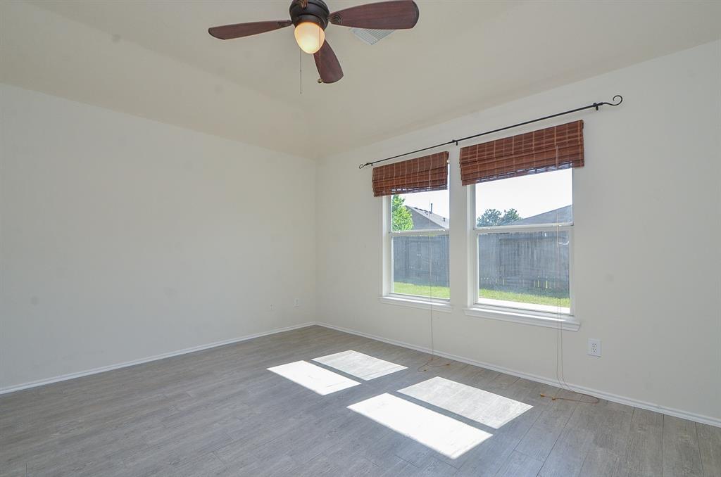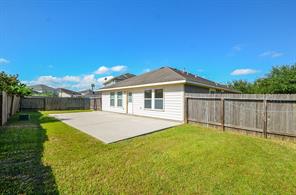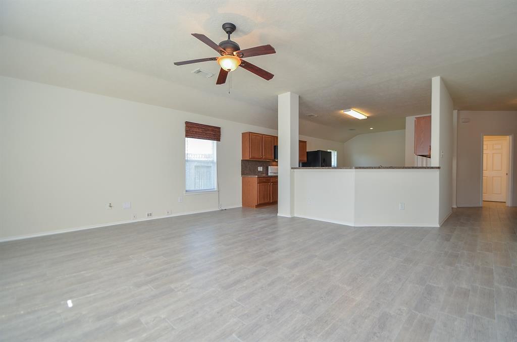 Nice family home is move-in ready. Beautiful wood-look tile flooring throughout the home. Large island kitchen with multi-purpose eating area and breakfast bar. Open floor plan with huge family room and lots of natural light. Spacious kitchen with new range/oven going in. Master bedroom with en-suite bath with separate shower and garden tub. Split floor plan with two guest bedrooms and guest bath in the front. Ceiling fans and double-paned windows with digital thermostat. New refrigerator, new washer, and new dryer all included. Fenced backyard with large patio and greenspace. Highly rated Fort Bend schools. Easy access to Westpark Tollway. Come home to Twin Oaks Village!