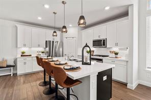 Stunning, Beazer duet home in the Northshore section of Towne Lake could be yours! Less than two years old, this low maintenance, 4 bedroom/3 bathroom home with a lake view from the front is paradise. Step outside the front door and see the lake from the porch and arrive to a full view in just a matter of seconds. Unwind in the evening and take in the view. Designer touches and selections throughout. Exceptional floor plan with two bedrooms down and two up plus a game room. Energy star rated and spray foam insulation = low utility bills! Other features include quartz countertops, tile flooring in main areas, gorgeous, custom fireplace in the living area, tall ceilings and oversized shower in primary bathroom. Kitchen refrigerator conveys with the home. Front and backyard maintenance included with HOA dues. Less than 2 miles from The Boardwalk and amenity center. Easy access to 290 and the Grand Parkway. Zoned to Cy-Fair ISD. Never flooded. Book your tour today!