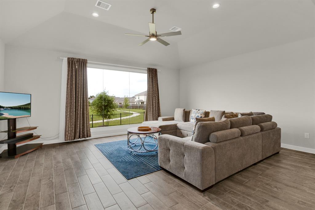 A 2024-built traditional-style home in the Oakwood community of Tomball. This two-story residence offers 4 bedrooms, 3.5 bathrooms, and a spacious 2,836 sq ft layout. The open-concept design includes a formal dining room, home office, upstairs game room, and media room. The kitchen features granite countertops, a large island, soft-close cabinets, and a walk-in pantry. The primary suite on the first floor boasts a soaking tub, separate shower, and walk-in closet. Enjoy serene lake views through the large picture window at the back, overlooking the neighborhood lake. Additional highlights include a covered patio, energy-efficient appliances, tankless water heater, and a two-car attached garage. Located in Tomball ISD. Community amenities include parks and walking trails.