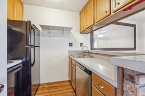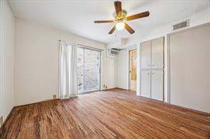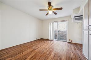 Charming corner unit condo in quiet and well-maintained gated community. Complex has a fabulous pool with lots of greenery and a fountain. Lots of windows provide plenty of natural light. Living room has plenty of space and there's a dining area, too. Bedroom has ensuite large bath and two closets. This unit has a private patio which is rare in this complex. W/D and fridge included. A/C is a window unit but the condo has ducts and vents that cool the house quickly. Assigned parking space and where you can park two cars tandem. Walkable to many places including West Alabama Ice House, Trader Joe's, PetSmart, Target, HEB, and The Menil Collection. Come see this wonderful unit in a fantastic community!
