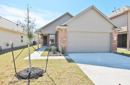 The Charlotte II Plan is a charming one-story home featuring 3 bedrooms and 2 bathrooms. The layout includes an open-concept family room and dining area with a clear view into the kitchen, creating a spacious and connected main living space. The primary suite is privately located at the back of the home and includes a full bathroom and walk-in closet. Two secondary bedrooms are situated at the front, sharing a nearby full bath. A small front porch and rear patio add outdoor comfort. Features include wood-grain vinyl plank flooring, a two-car attached garage, fenced backyard, and a sprinkler system. All homes are SimplyMaintained for a $100 monthly fee that includes front and back yard lawn care and exterior pest control. Lone Cypress is a peaceful neighborhood located in Katy, TX, offering convenient access to both Interstate 10 and the Grand Parkway for easy commuting. The community is zoned to Cypress-Fairbanks ISD and features amenities such as a neighborhood pool and clubhouse.