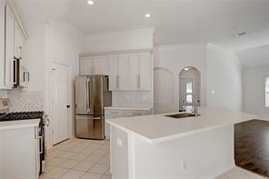 Luxurious and charming one-story free-standing home with an open floor plan. Re-designed and renovated with quality material and detailed craftsmanship. Large open floor-plan w/high ceiling living room that opens to cozy kitchen features brand new 42" soft-closing solid wood cabinet, quartz counters, marble back-splash. No carpet! This cozy home has plenty of natural lights and ample space with High ceilings, a formal dining room, breakfast area, and island kitchen with All NEW appliances. The floor plan also offers spacious bedrooms with a split plan. All zoned to highly acclaimed Katy ISD School District. Fridge, washer, dryer Included. Schedule your showing today.
