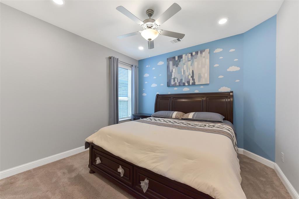 Stunning home nestled on a quiet street in Rosehill Reserve. This two story is located across from green space and boasts a functional open-concept design complete with 4 bedrooms (2 downstairs), 3 full baths, a home office, elegant formal dining, and a large upstairs gameroom. The gourmet kitchen is equipped with a huge island, stainless steel appliances, 42" raised panel cabinetry, under-cabinet lighting, a walk-in pantry, and a breakfast nook with glass-front display cabinets. The kitchen flows seamlessly into the family room that has a cast stone fireplace. The primary suite is tucked away downstairs and features a a corner soaking tub, oversized shower, dual vanities, and a generous walk-in closet. A secondary bedroom on the main floor adds flexibility for guests or multigenerational living. Epoxy flooring in the garage. Large backyard with a covered patio and room for a future pool. No front neighbors, and located within walking distance to the community pool.