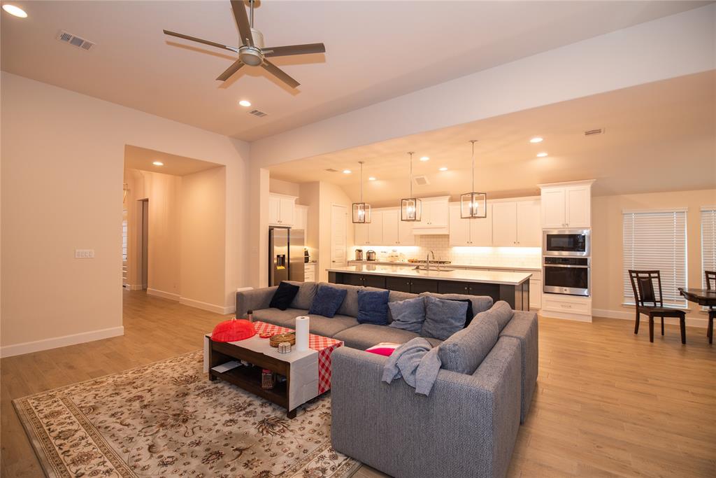 Better than new. The home is still under full warranty 1-2-10 by the builders. The first year warranty won't expire until 9/20/25. The home features a large kitchen and dining area. The family room features a wood mantel fireplace and a wall of windows. The kitchen hosts a 5-burner gas cooktop and island with built-in seating space. Game room with French doors. A large primary suite. Dual vanities, garden tub, separate glass-enclosed shower and two large walk-in closets in a primary bath. A Hollywood bath, high ceilings, large windows and abundant closet space add to this one-story design. Extended covered backyard patio. Water softener with tile floor in the 3-car garage. Home equipped with full security camera system. Wood-like tile installed throughout the home and extended concrete backyard and both sides of the house.