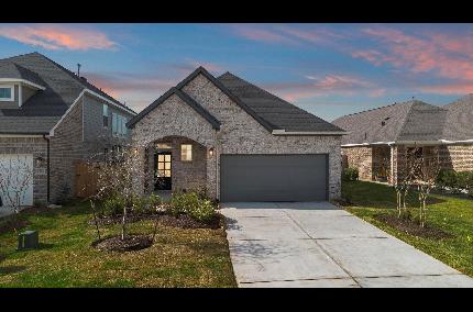 The Athens Plan -Spend the holidays in this beautiful home loaded with modern amenities and luxurious interior features. HUGE covered front porch w/ brick pavers. 5" base boards and door casings. TALL ceilings. Porcelain wood look tile flooring. White 42" cabinets with white quartz countertops & a herringbone tile backsplash, under cabinet lighting, designer pendant lights over island, farm house style sink stainless appliances + FRIDGE. The primary retreat includes separate tub & shower with dual vanities. Full sprinkler system front & back. Tankless water heater. 16-SEER AC by Lennox. Double pane Low e-vinyl windows. 2" blinds. Garage door openers & so much more!